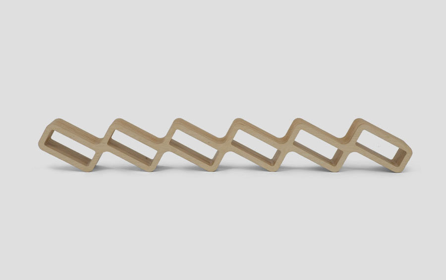 El librero Quetza guarda un parentesco lejano con el dios Azteca Quetzalcóatl, cuya forma era una serpiente emplumada. La pieza puede apoyarse en la pared o ser soportada por una mesa o una silla. Como aparece en la arquitectura prehispánica, la serpiente desciende a la tierra deslizándose por una escalera. El diseño está disponibles en dos tamaños distintos.