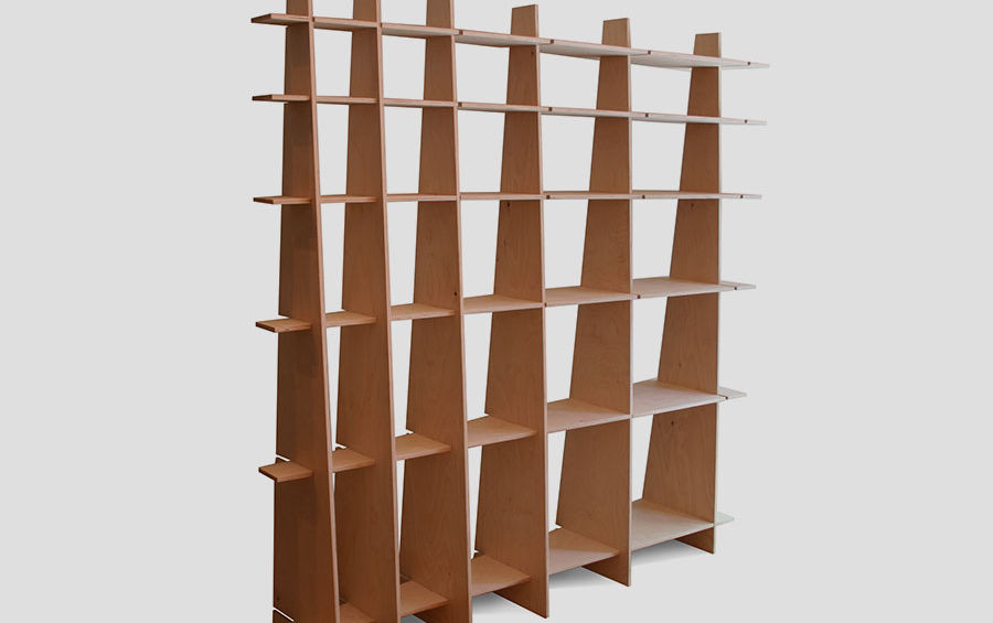 SAK (Soñando a Kuramata) se basa en el icónico librero “64 Bookshelves” del diseñador japonés Shiro Kuramata, quien en su pieza dividió el área de un rectángulo en 64 compartimentos que incrementan en tamaño de una esquina a otra. El diseño creado para Pirwi lleva la progresión reticular de Kuramata a la tercera dimensión, es decir, no solo el área de las celdas aumenta de una esquina a otra, también la profundidad de las repisas. Este icónico librero se ensambla con la repetición de una sola pieza, evitando así el uso de pegamento o herrajes.